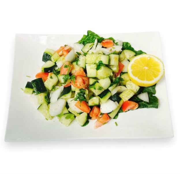 Diced onion, tomato, cucumber tossed in a tangy lemon dressing.