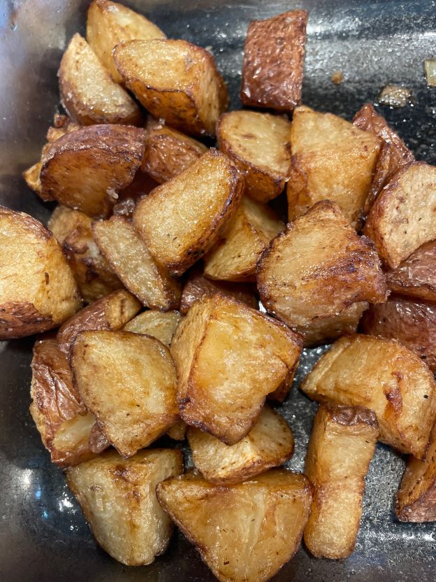 Chunks of chicken sauteed w. red peppers, garlic & ginger