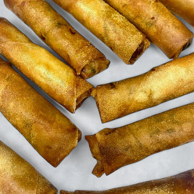 Pork or Veggie Egg Rolls served with side of Lettuce and green Herbs