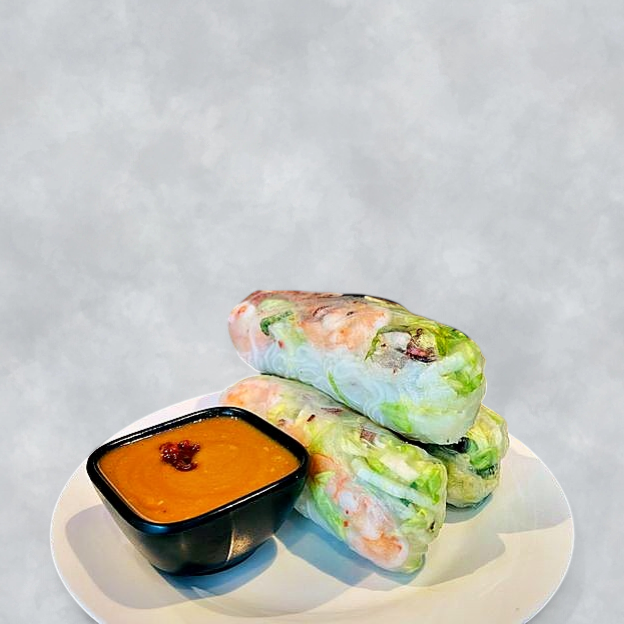 Rice Paper Rolls with BBQ Pork, Shrimp, Herbs, and Vermicelli. Served with Peanut dipping sauce
