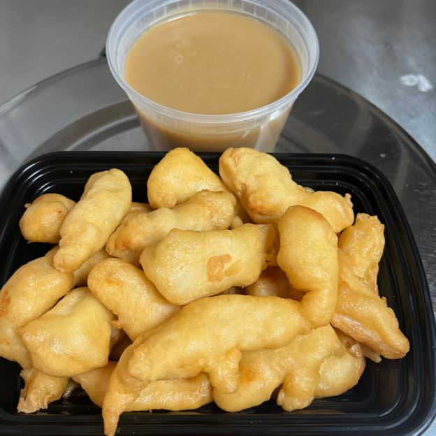 Deep fried pork wonton served with red sweet & sour sauce
