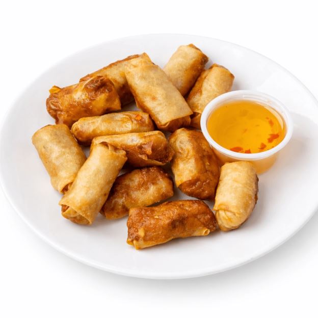 Deep-fried rolls filled with chicken. Served with sweet and sour sauce.