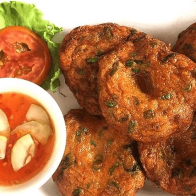 Deep-fried bean curd served with sweet ground peanut sauce.