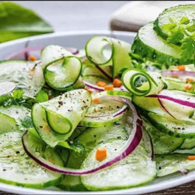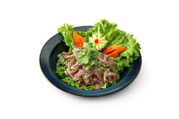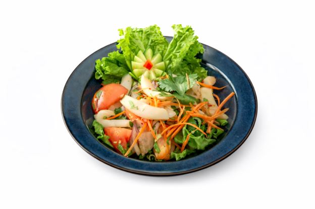 Battered deep-fried squid served with lettuce, cucumber and homemade hot sauce.