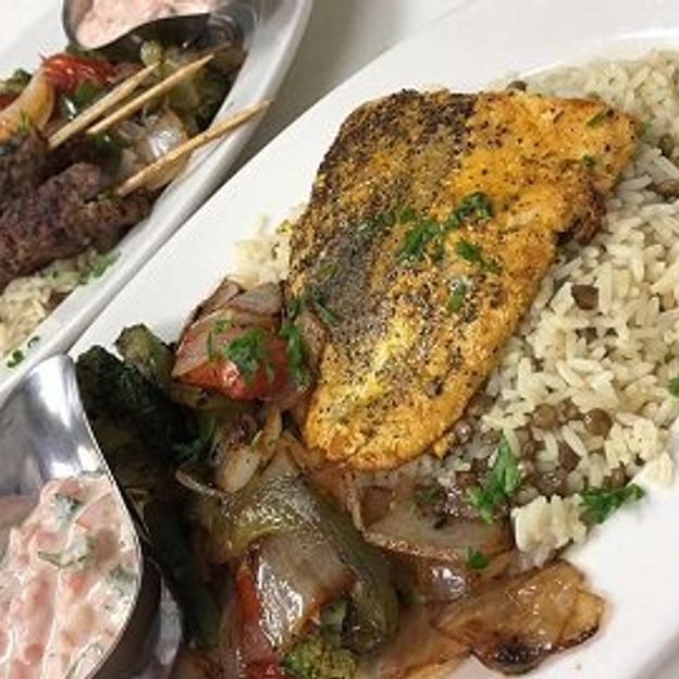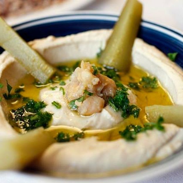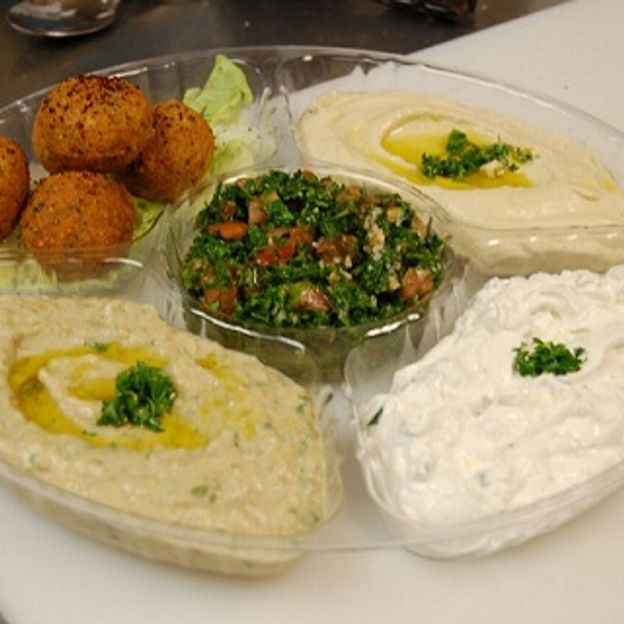 Ground chickpeas and fava beans with minced onions and spices, formed into small balls, fried in 100% vegetable oil, wrapped in pita bread and topped with tahini sauce and pickles.