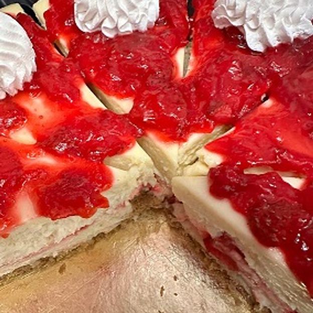 Creamy cheesecake with a strawberry topping, perfect for strawberry lovers.