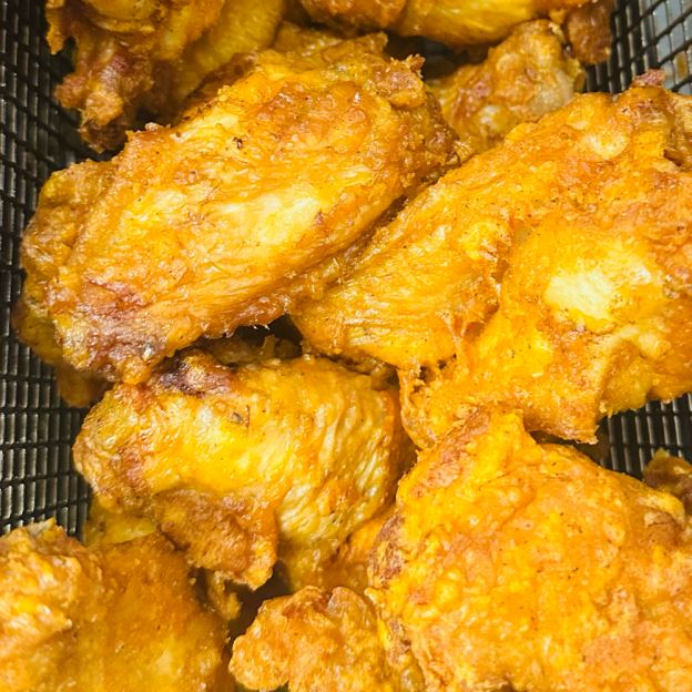 Jumbo size wings coated in breading. Add extra dressing and flavor for an additional charge.