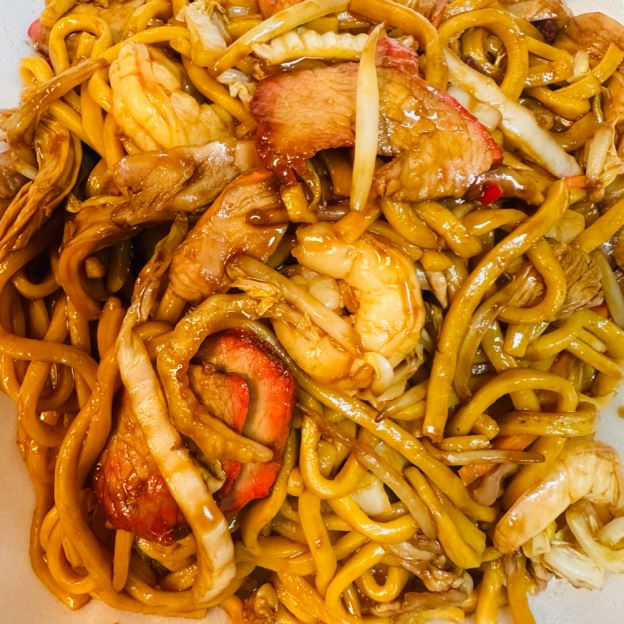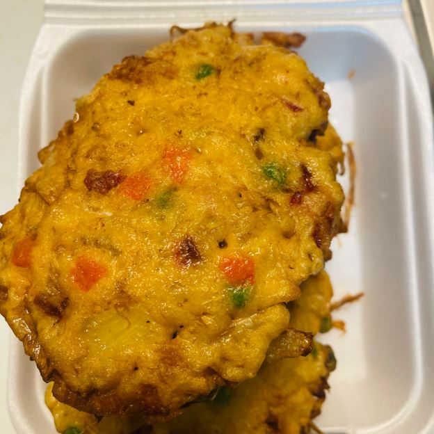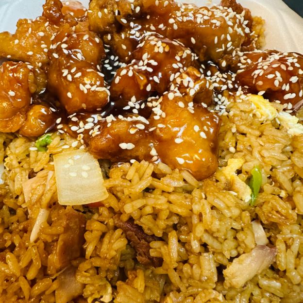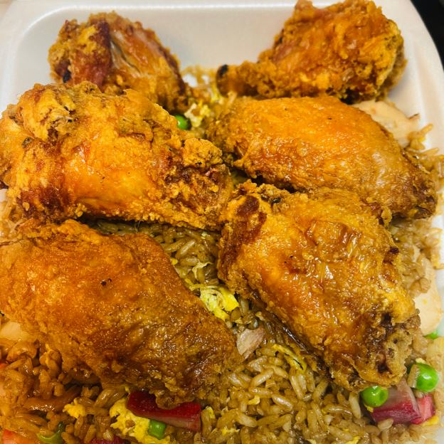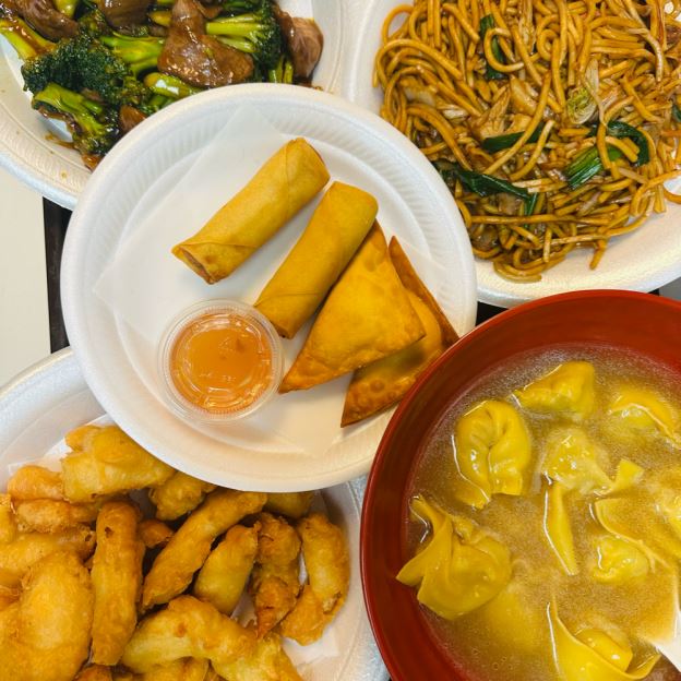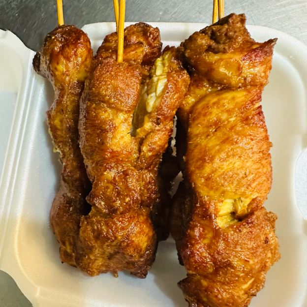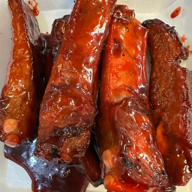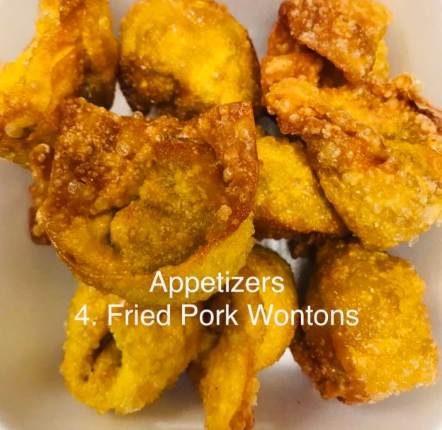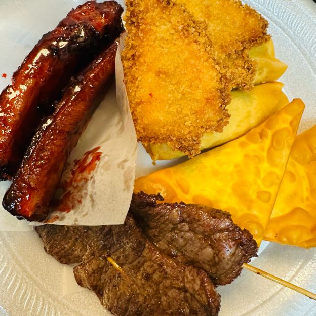 For 2. 2 spare ribs, 2 beef teriyaki sticks, 2 spring rolls, 2 fantail shrimp, 2 cream cheese with crab wontons.