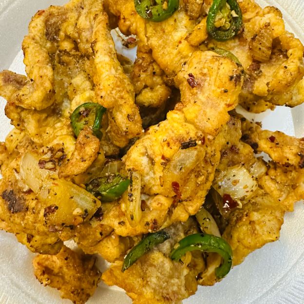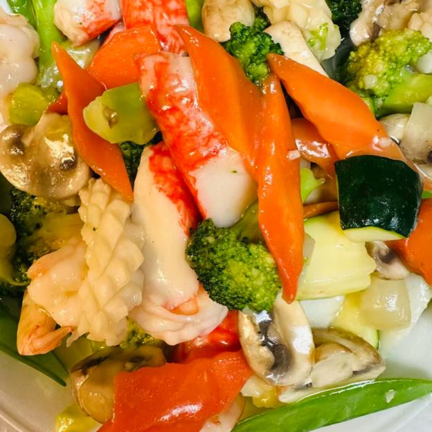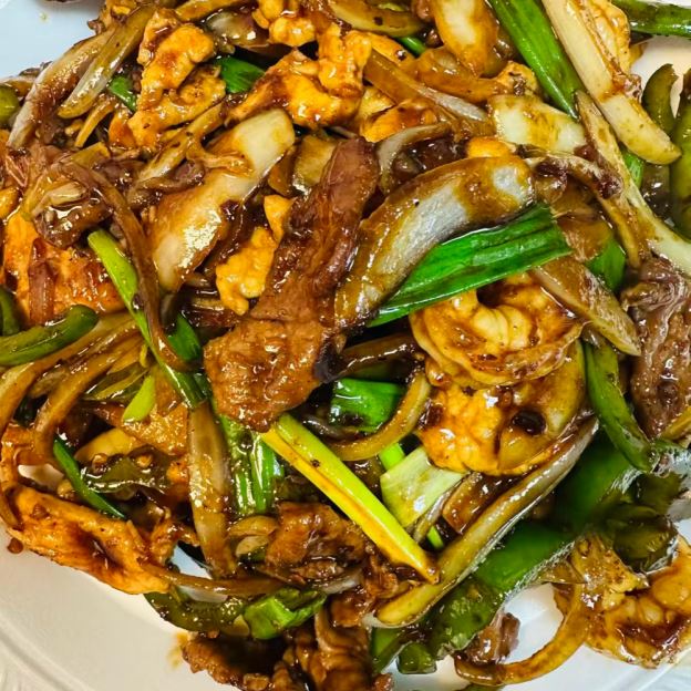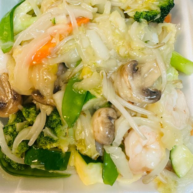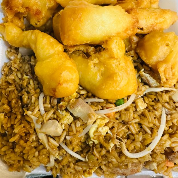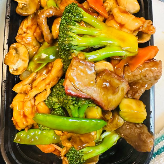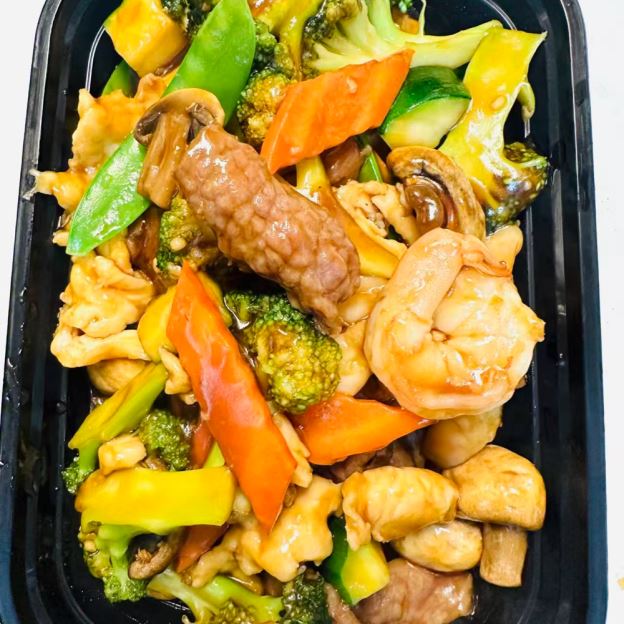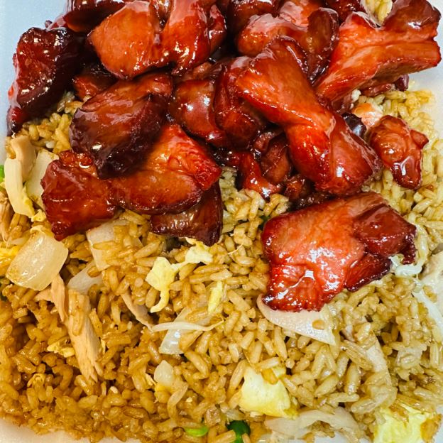 For 2. 2 spare ribs, 2 beef teriyaki sticks, 2 spring rolls, 2 fantail shrimp, 2 cream cheese with crab wontons.