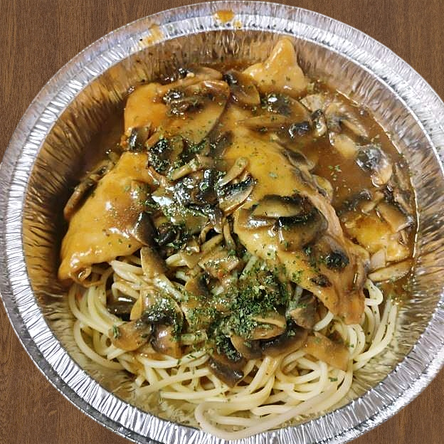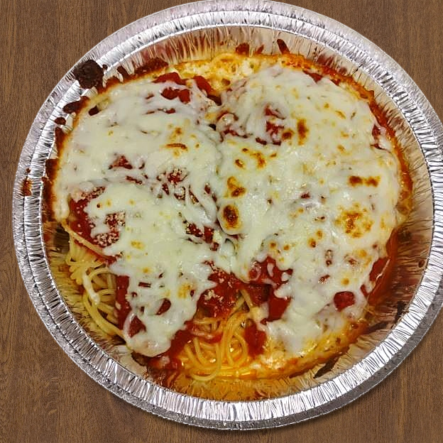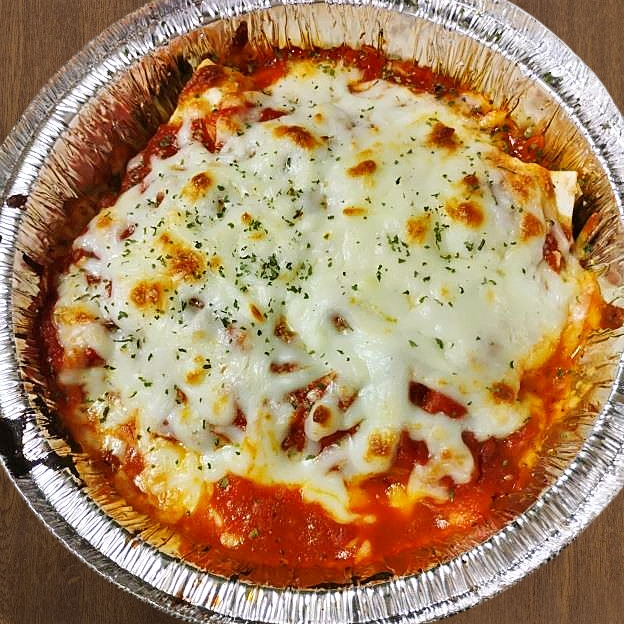 Sliced eggplant stuffed with angel hair pasta, ricotta & mozzarella
