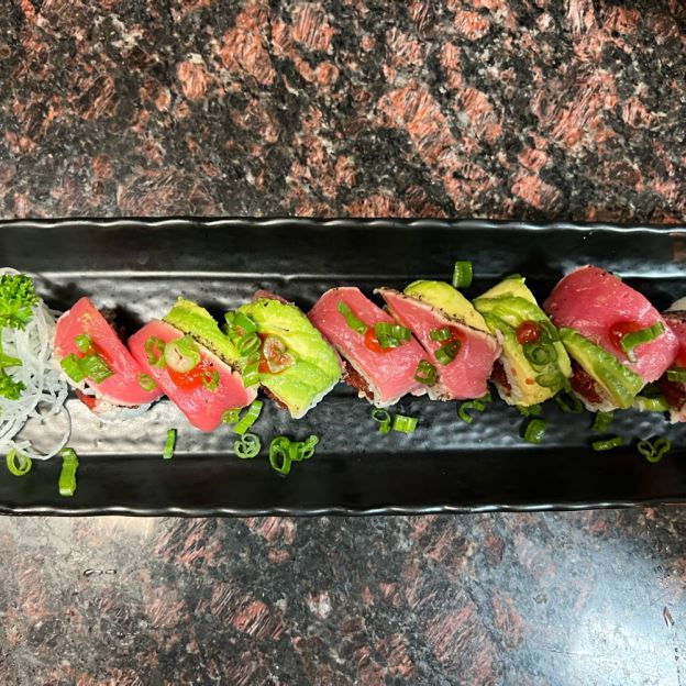 9 3 pcs Salmon Sashimi, Spicy Tuna Roll