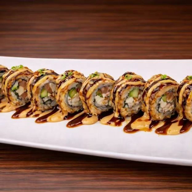 crispy rice topped with spicy tuna, avocado, masago, scallion, and house special sauce