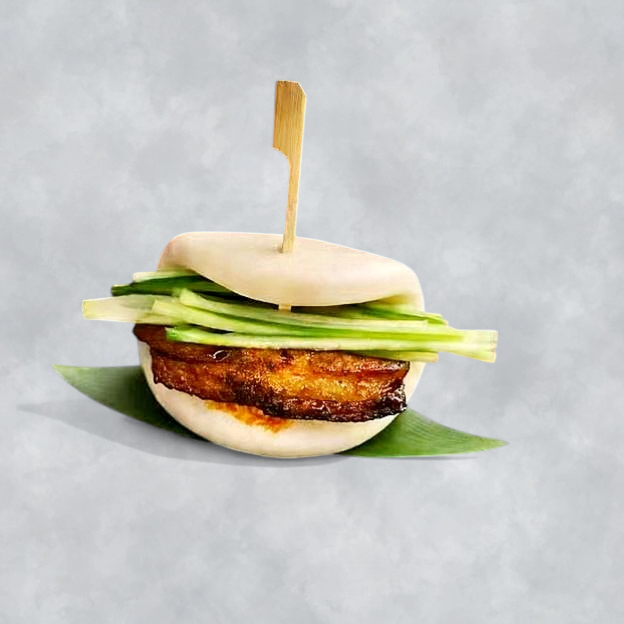 steamed bun filled with braised pork belly, special sauce, cucumber, and sesame