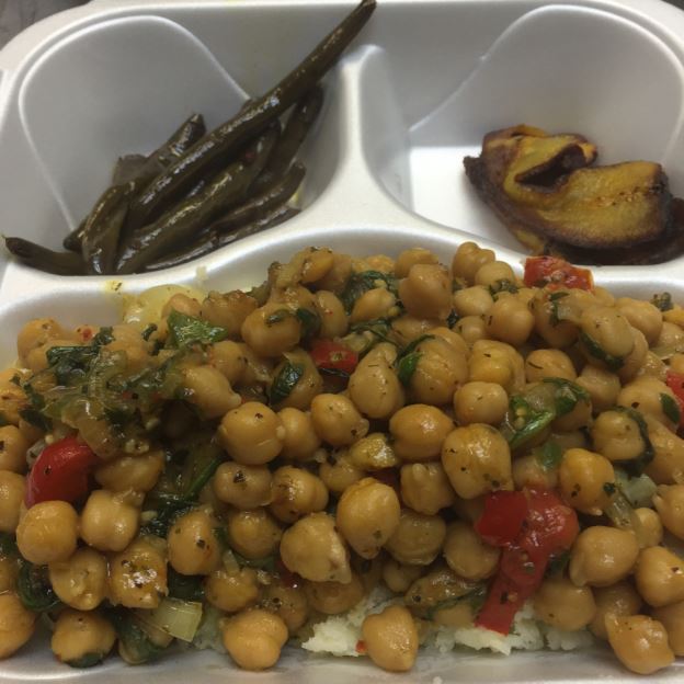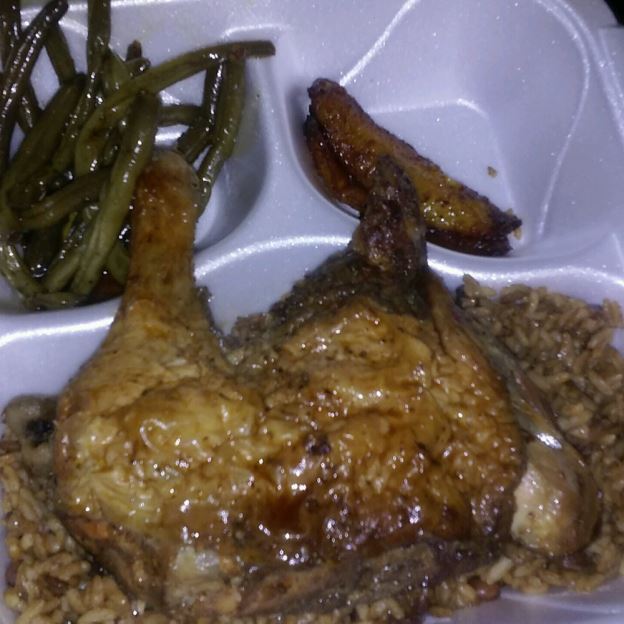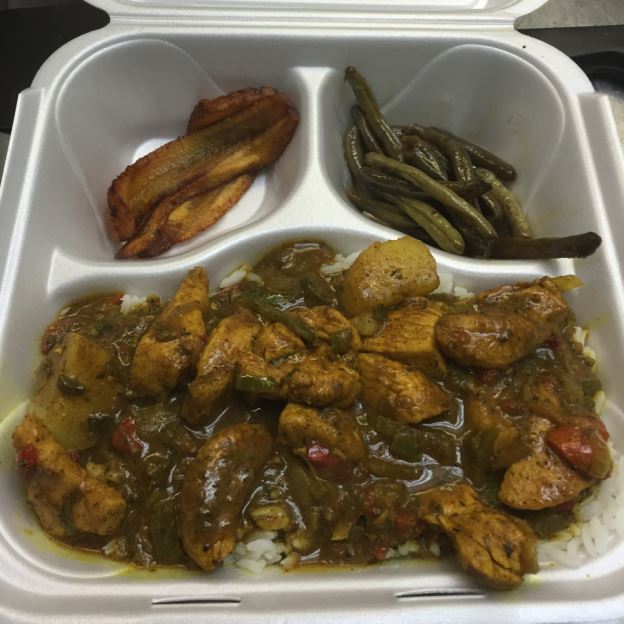 Served on Rice & Peas, Plain Rice, Mashed Potato, Roti or Puri and two sides (sweet plantains, string beans, stewed cabbage)