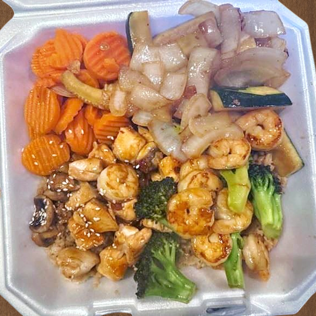 All Entrees Include Soup (Clear Broth With Mushrooms And Scallions), Salad (Wok And Hibachi Mixed Tossed Salad Served With Our Homemade Dressing), Vegetables (Zucchini, Onions Or Glazed Carrots) And Fried Rice (Hibachi Special Fried Rice)