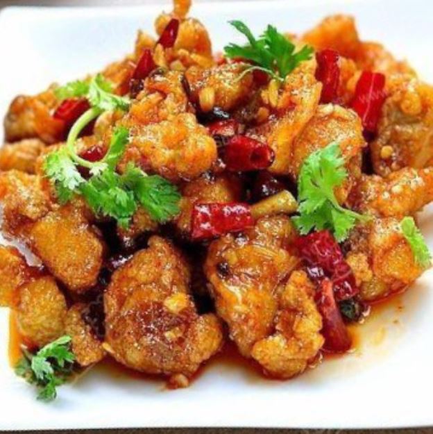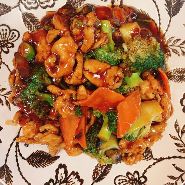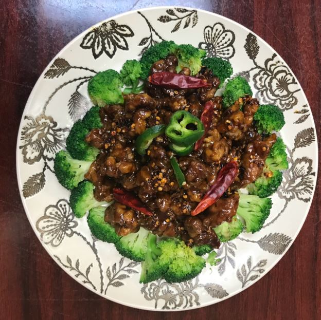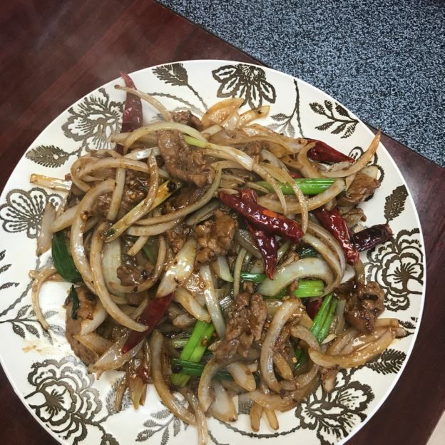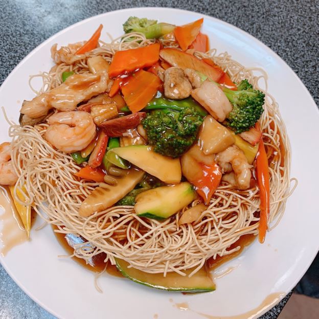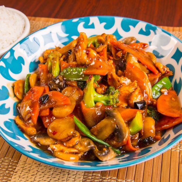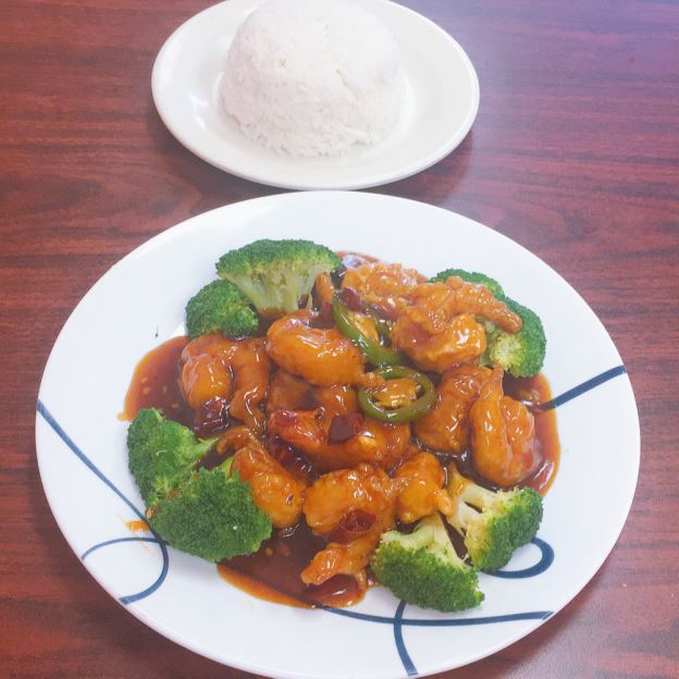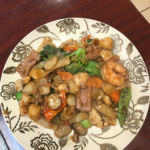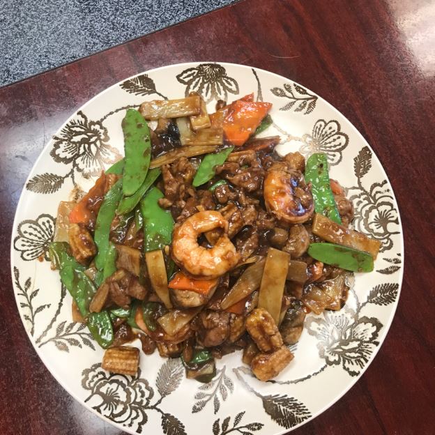 Jumbo shrimp and chicken stir-fried with string beans and onions in house spicy sauce.