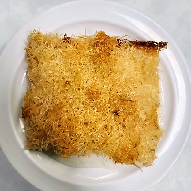Sweet Cheese covered with shredded dough and topped with honey syrup