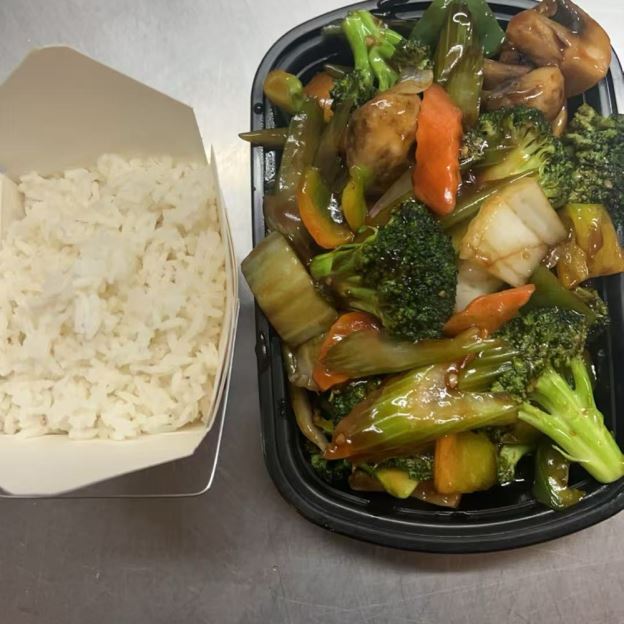 Chicken with Broccoli (Lunch).(with fried rice wonton and egg roll)
