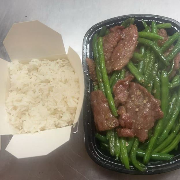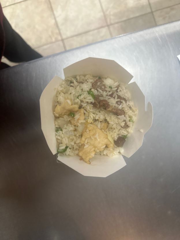 Mongolian Beef (Lunch).(with fried rice wonton and egg roll)