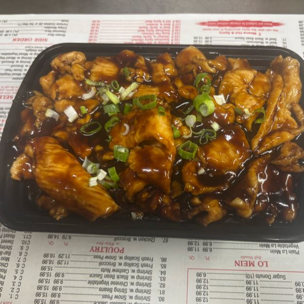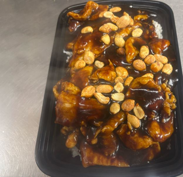 tender chunks of chicken deep fried crispy with sesame seed on the top in special hot and sweet & sour sauce served on top of broccoli