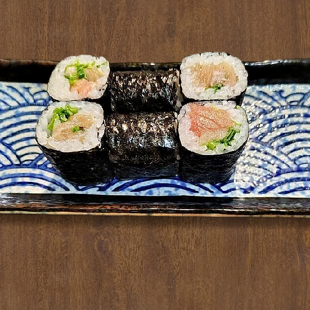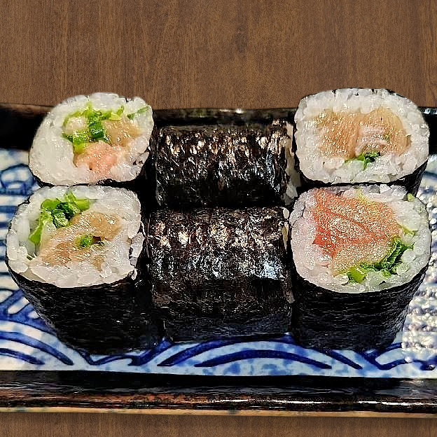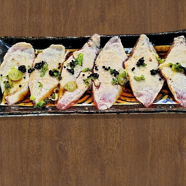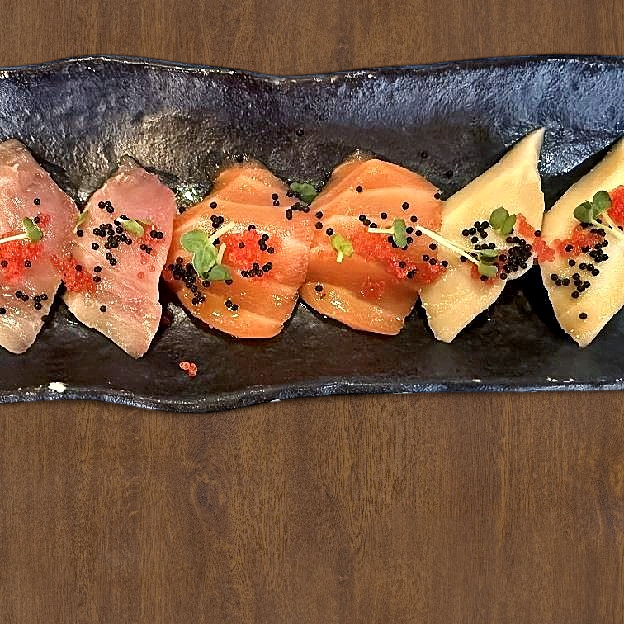 Salmon, yellowtail, white tuna, mix tobiko, micro green