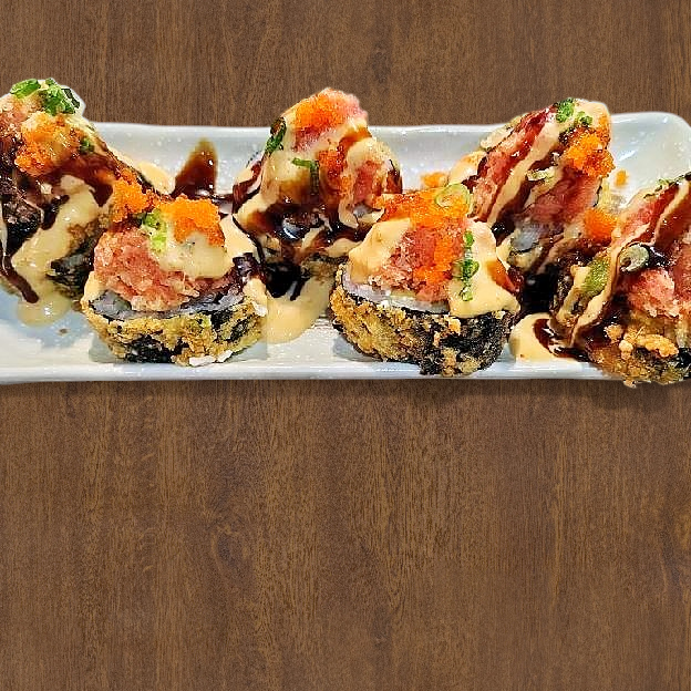 Spicy tuna, cream cheese,tobiko, scallion, deep fried