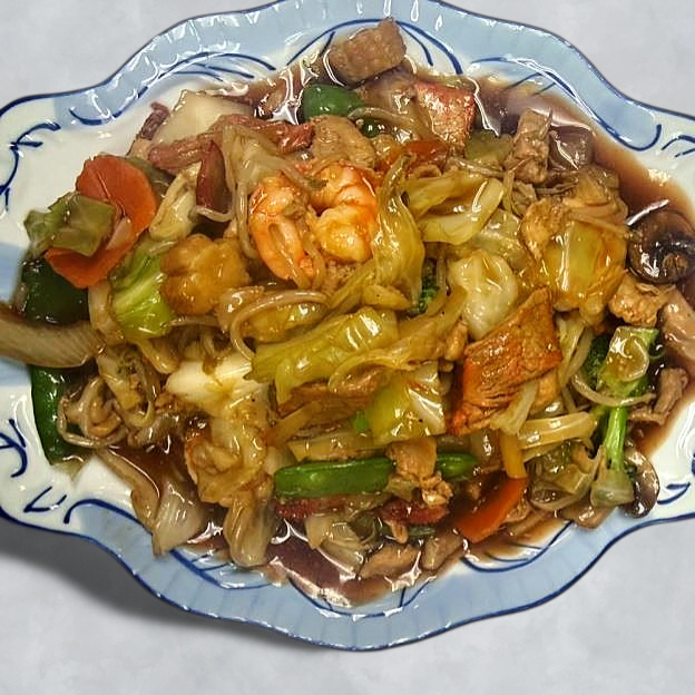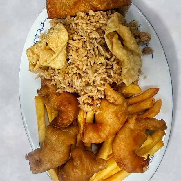 2 Egg Rolls, Fried Shrimp, Chicken Teriyaki, Shrimp Toast, BBQ Pork