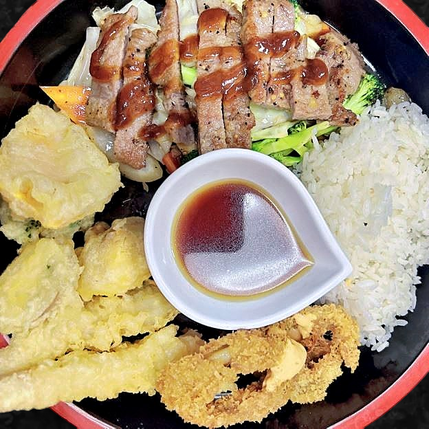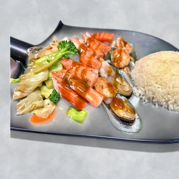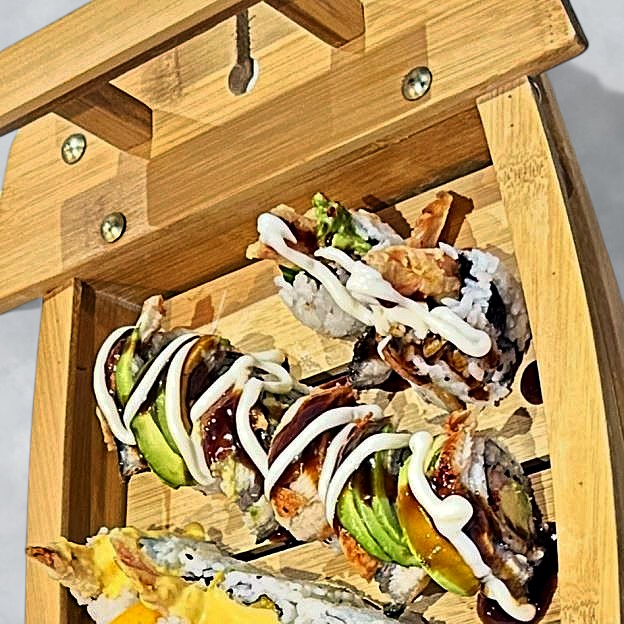 30 pcs sashimi: salmon, white tuna, snapper, ,tuna, shrimp, crab stick, surf clam. 24 pcs sushi: salmon, tuna, white tuna, snapper, shrimp, crab stick, BBQ eel, surf clam 36 pcs maki: California, Dynamite, BBQ eel, salmon, white tuna, cucumber.