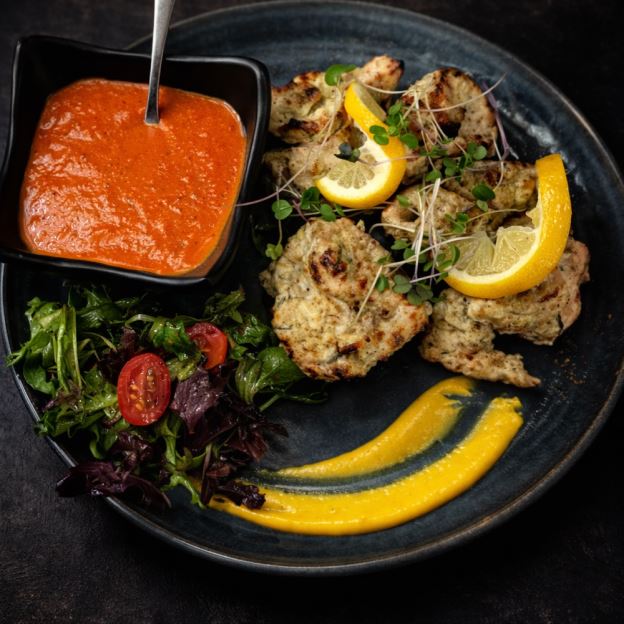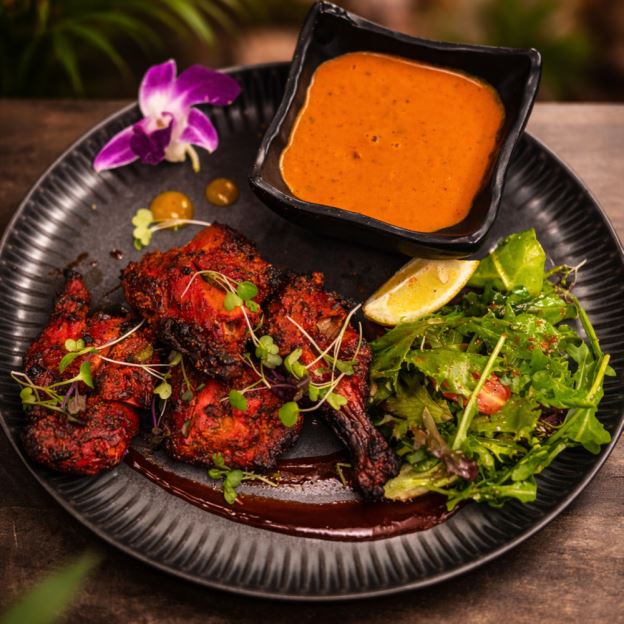 Chicken marinated in hung yogurt, kashmiri chillies, gram flour, ginger & garlic