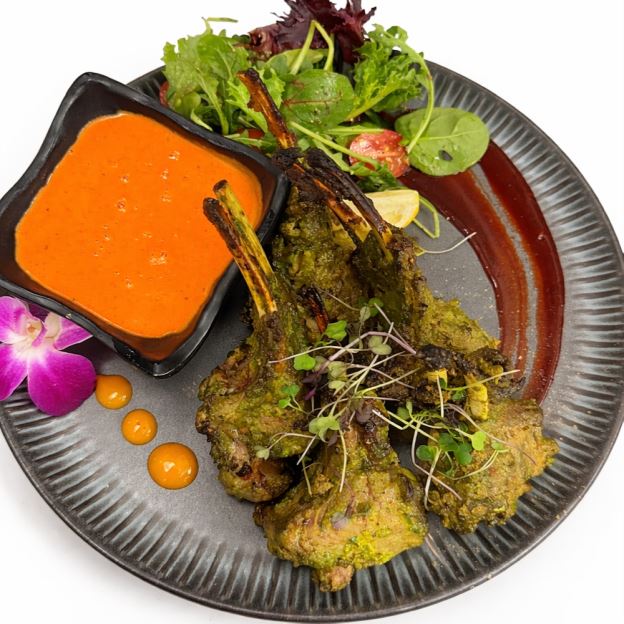 Chicken marinated in thyme, ginger, garlic, garam masala, yogurt & pomegranate powder
