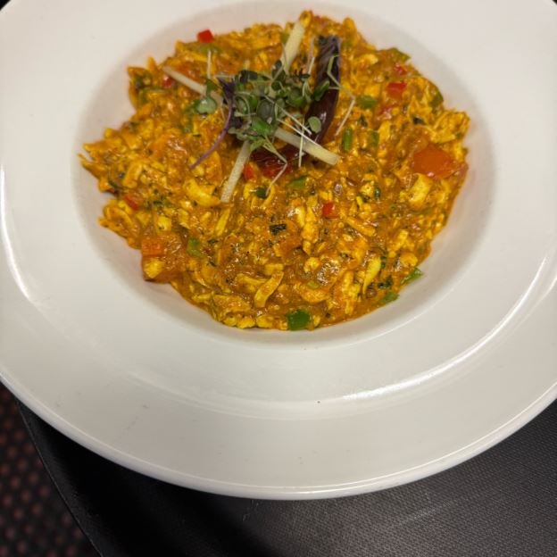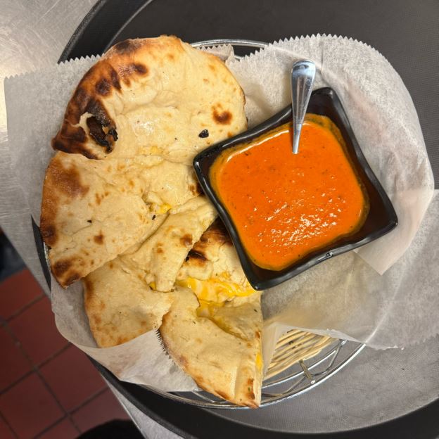 Cheese stuffed naan served with rich buttery makhni sauce.