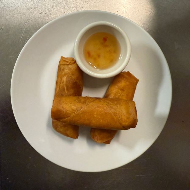 3 THAI SPRING ROLLS STUFFED W/ NUTRITIOUS VEGGIES, AND SERVED W/ A HOUSE SAUCE