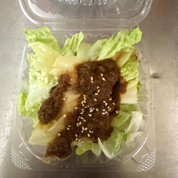 ICEBERG LETTUCE, CUCUMBER, TOMATO, CARROT, GINGER DRESSING