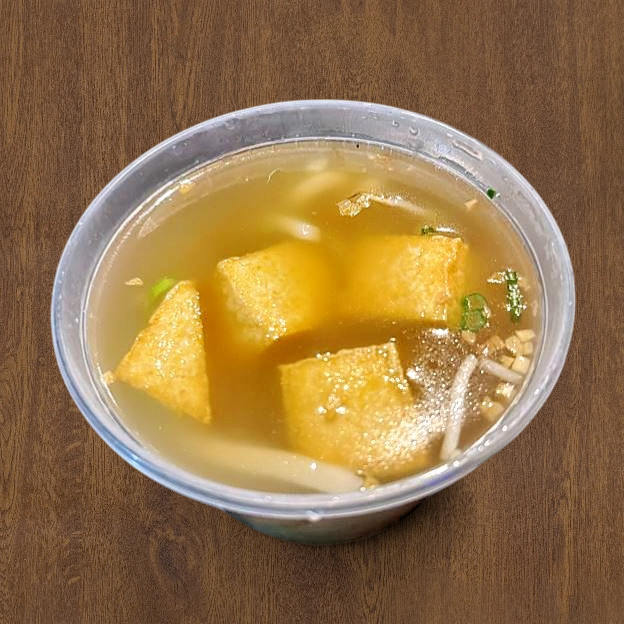 Delicate broth with soy bean paste, tofu, seaweed and scallions