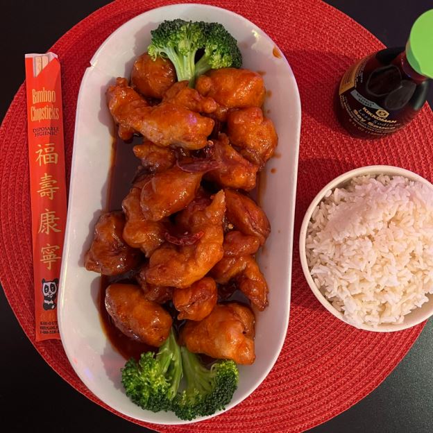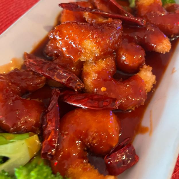 Arroz Frito Especial, Pollo, Cerdo O Camaron. Eggs, scallions and bean sprouts.