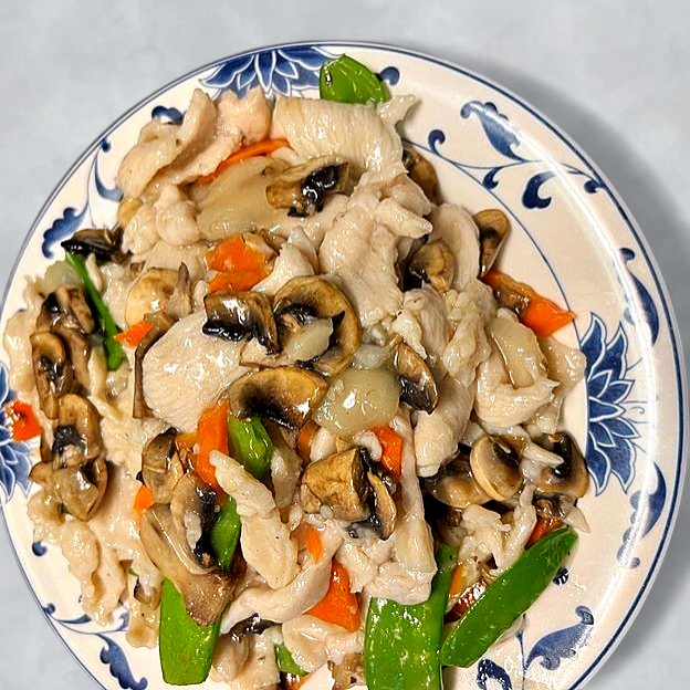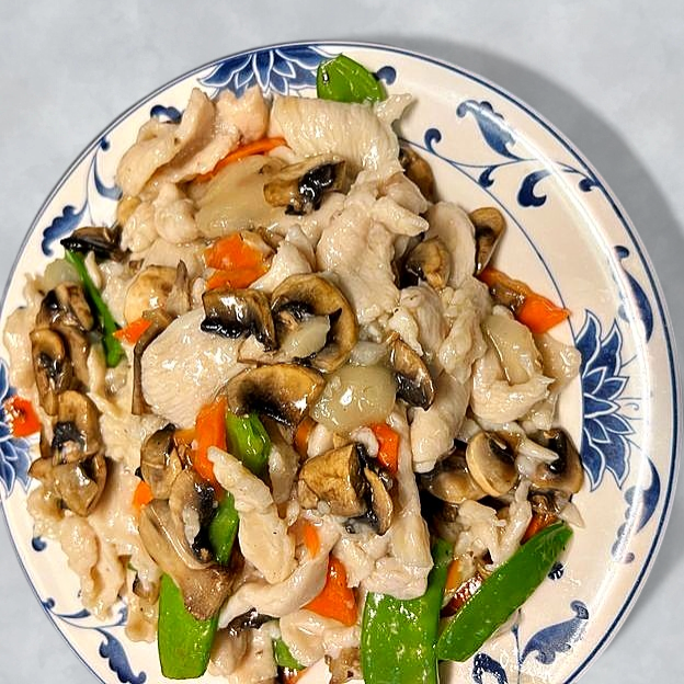 L22. Chicken with Fresh Mushrooms and Snow Peas Lunch