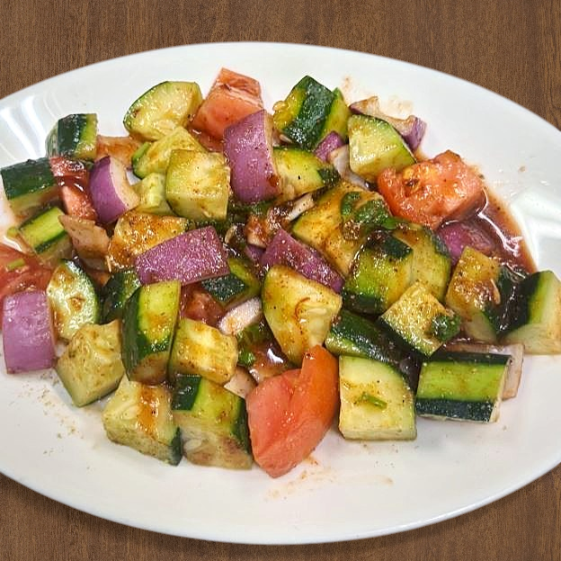 Freshly chopped cucumber and tomatoes lightly seasoned.