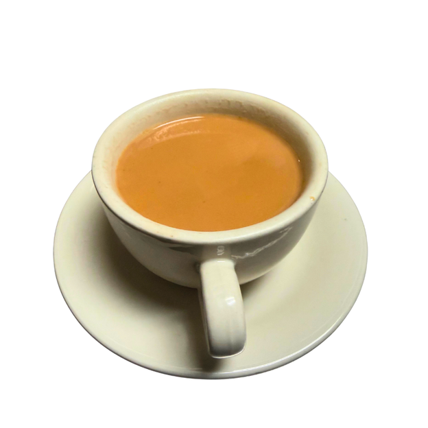 A warm, aromatic blend of black tea brewed with milk, sugar, and traditional spices like cardamom, ginger, and cinnamon.