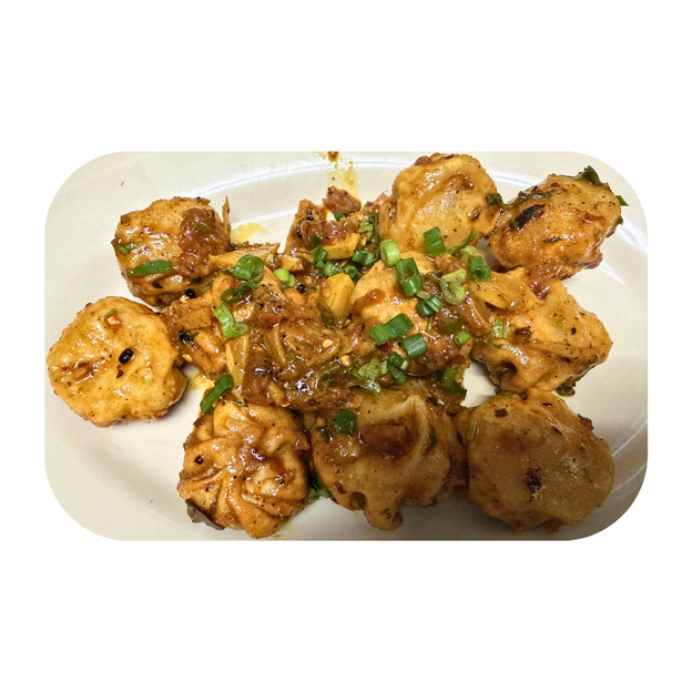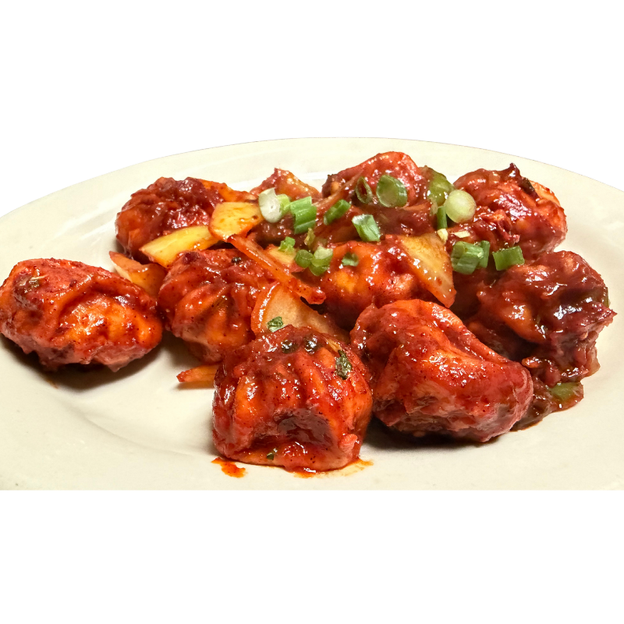 Boneless white meat chicken in special spices with onions, bell peppers, soya sauce and touch of garlic.