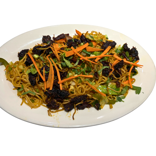 Indian cheese in special spices with onions, bell peppers, soya sauce and a touch of garlic.