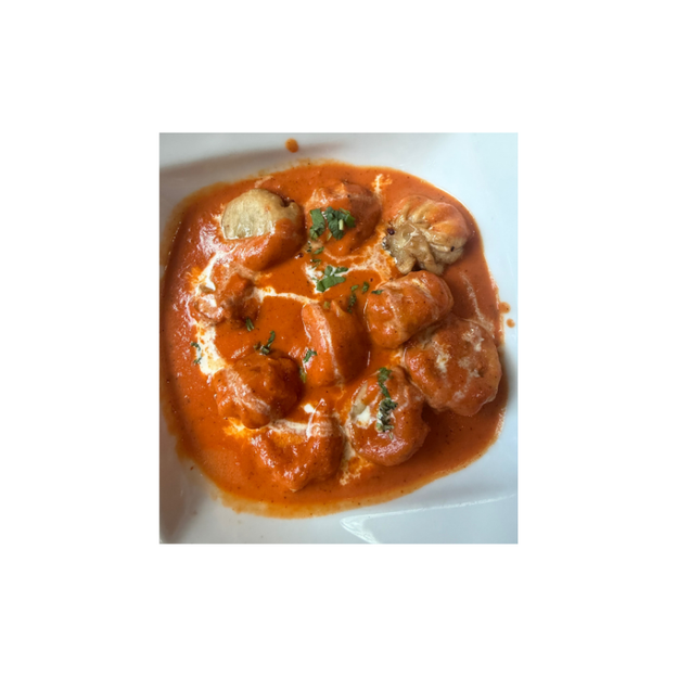 Makhani Sauce, Cheese, Masala Chicken And Fresh Cilantro.