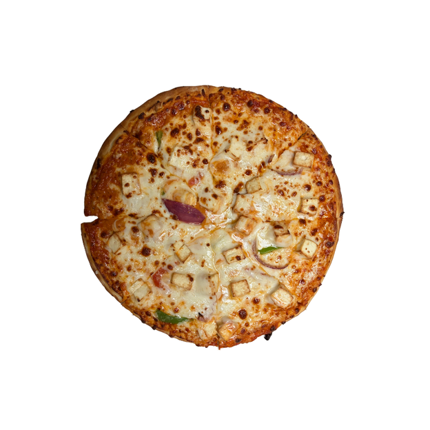 Crispy pizza topped with flavorful curry sauce, mozzarella cheese, fresh vegetables, and aromatic spices. Choice of protein.