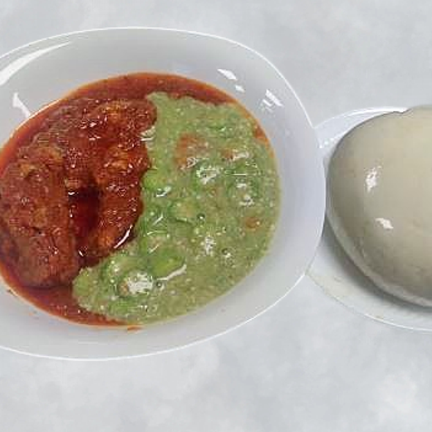 Egusi stew is a blended mixture of ground melon seed, pepper sauce and a leafy vegetables cooked with spices in rich palm oil. Egusi stew has its origin from the Yoruba tribe in western Nigeria. Egusi stew is usually mild but can be prepared hot upon request.