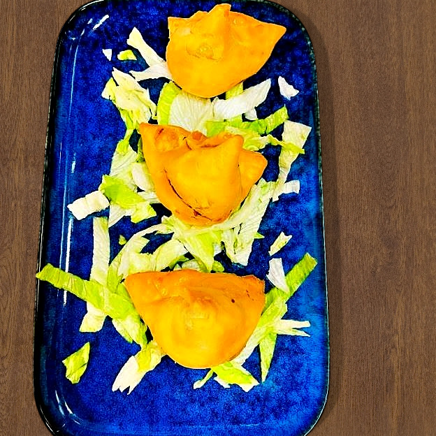 Turnovers made with a tender flaky pastry filled with seasoned Potatoes, Green Peas and mild Indian spices