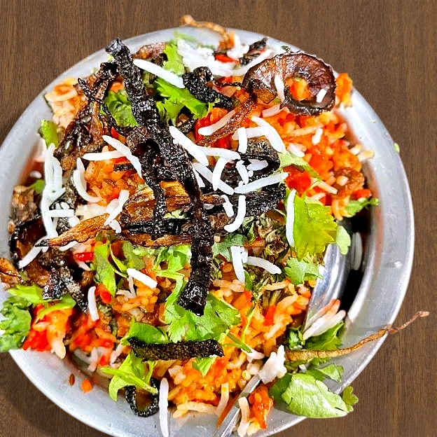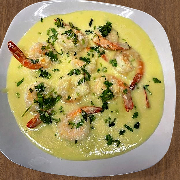 Sauteed shrimp tossed in a tangy garlic and coconut sauce.