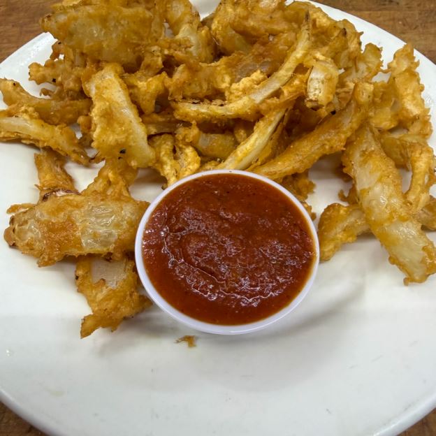 Succulent Mushrooms Lightly Battered and fried, served with Marinara Sauce.