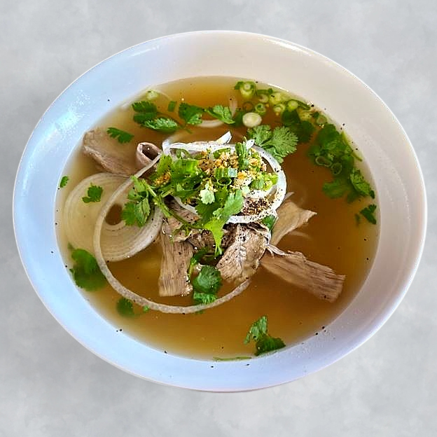 Chicken, shrimp, and pork all in one bite! Wrapped in golden wonton skins and served with sprouts, scallions, and our addictive sweet soy sauce.