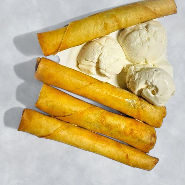 Mixed vegetables and clear noodles wrapped with spring roll skin and deep fried, served with sweet and sour sauce.