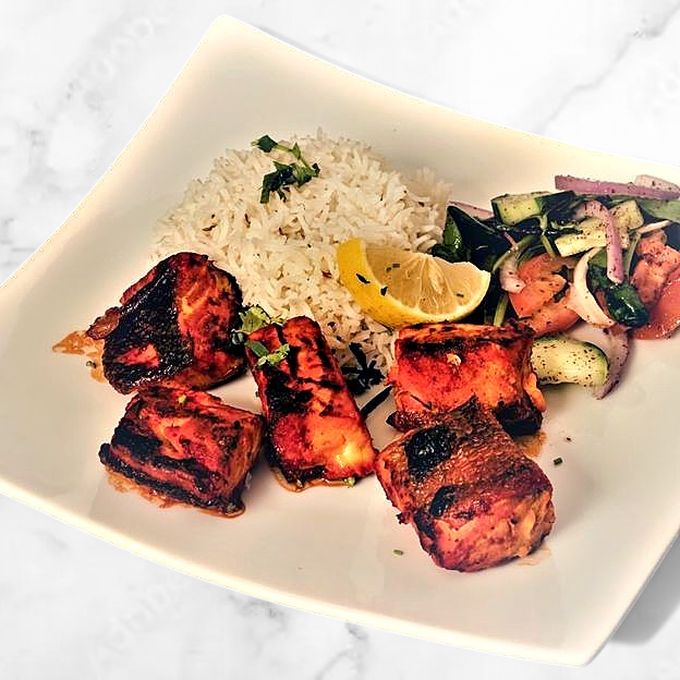 Seafood. Tempura battered marinated fried shrimp crisps with fresh ginger, garlic, & Indian spices.