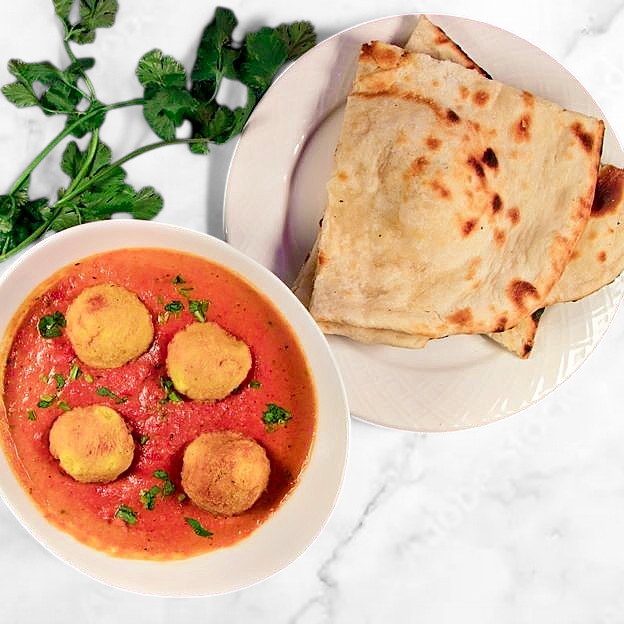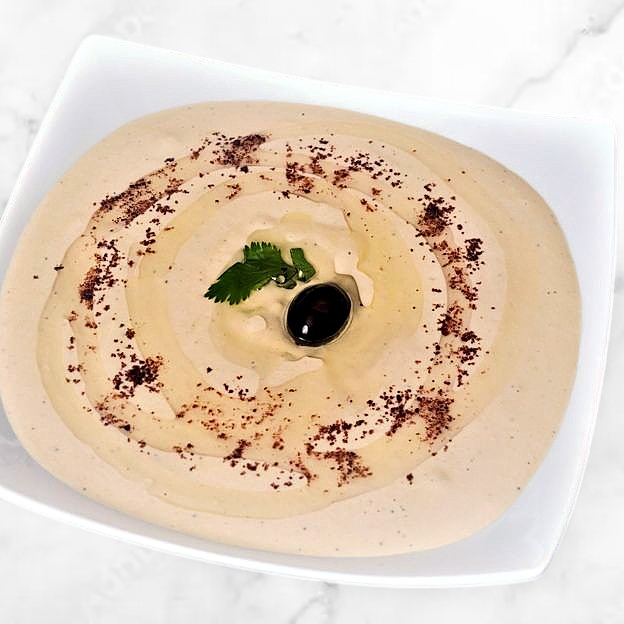 Vegan. Fresh combination of tahini and chick peas. Served with naan.